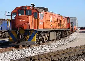 The Class 34-000 type GE U26C diesel-electric locomotive of the South African Railways (SAR) was designed by General Electric (GE). The first three locomotives were built by GE and imported, numbered in the range from 34-001 to 34-003, while the remainder were built by the South African General Electric-Dorman Long Locomotive Group (SA GE-DL, later Dorbyl) and numbered in the range from 34-004 to 34-125. The 125 locomotives entered service between July 1971 and March 1973.[1][2][3]