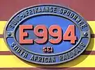 ![]() No. E941, with rounded corners, at Ladysmith, KwaZulu-Natal, 5 August 2007 | |||||||||||||||||||||||||||||||||||||||||||||||||||||||||||||