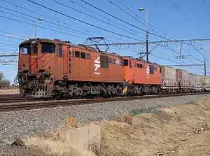 The 3 kV DC Class 6E1, Series 1 electric locomotive was designed and built for the South African Railways (SAR) in 1969 and 1970 by Union Carriage & Wagon (UCW) in Nigel, Transvaal, with the electrical equipment being supplied by Associated Electrical Industries and English Electric.[3][4]