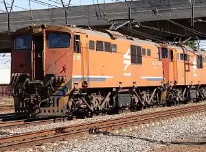 Beginning in 2000, Spoornet began a project to rebuild Series 2 to 11 Class 6E1 locomotives to Class 18E, Series 1 and Series 2 at the Transnet Rail Engineering workshops at Koedoespoort. In the process the cab at the no. 1 end was stripped of all controls and the driver's front and side windows were blanked off to have a toilet installed, thereby forfeiting the locomotive's bi-directional ability.[4][5]