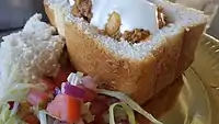 Bunny chow, a dish from Durban ("the largest 'Indian' city outside of India"[11]) consisting of a hollowed-out loaf of bread filled with curry, has adapted into mainstream South African cuisine and has become very popular amongst the populace.