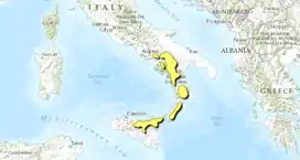 | Regions | Basilicata, Calabria, Campania, and Sicily |