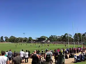 The first recorded game of any "football" in South Australia was that of 'Caid' played in Thebarton by people of the local Irish community in 1843 to celebrate St Patrick's Day. In 1844 there was debate amongst the South Australian Legislative Council whether it be allowed that "foot-ball" be played on Sundays, with arguments against preferring the quiet worship of God.[3] In 1859 the Gawler Institute ran a rural fete which included a game of football being staged.[4]