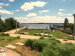 The Greenway includes Hunts Point Landing, a park which opened in 2012. The size is cited as 1 acre (0.40 ha) or 1.5 acres (0.61 ha) by various sources.[12][13] Located at the end of Farragut Street, which was partially demapped, the park includes a fishing pier, and a canoe and kayak launch area providing access to the East River.[12][14] Granite recycled from the Willis Avenue Bridge when it was replaced in 2005 was used to construct seating in the new park.[15][16]