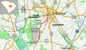 South Carolina Highway 120 (SC 120) is a 17.390-mile (27.986 km) state highway in the U.S. state of South Carolina. The highway connects Pinewood and Sumter.