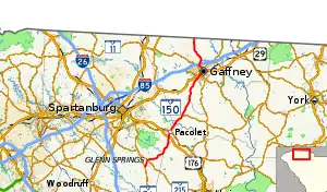 South Carolina Highway 150 (SC 150) is a 33.580-mile (54.042 km) primary state highway in the U.S. state of South Carolina. The highway connects Pacolet and Gaffney with the more rural areas of Spartanburg and Cherokee counties.