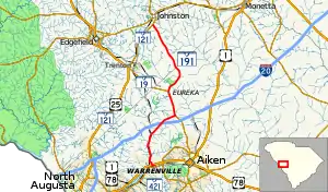 South Carolina Highway 191 (SC 191) is a 21.930-mile-long (35.293 km) state highway in the U.S. state of South Carolina. The highway connects Warrenville and Johnston.