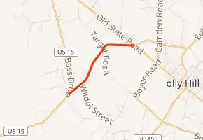 SC 314 begins at an intersection with US 15 (Bass Drive) west-southwest of Holly Hill, within Orangeburg County. It travels to the northeast and curves to the north-northeast. It then curves to the east and meets its eastern terminus, an intersection with US 176 (Old State Road).[2]