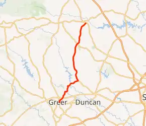 | Greer | 0.000 | 0.000 | Southern terminus | ||