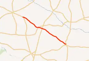 SC 389 begins at an intersection with SC 39 (West Railroad Avenue/Festival Trail Road) in Perry, within Aiken County. It travels to the southeast, enters Orangeburg County, and intersects SC 394 (Salley Road) at a point northeast of Salley. Less than one mile (1.6 km) later, it intersects SC 3 (Capital Way). The highway continues to the southeast and enters the city limits of Neeses. It curves to the east-northeast and crosses over railroad tracks before meeting its eastern terminus, an intersection with U.S. Route 321 (US 321; Savannah Highway). Here, the roadway continues as Ninety Six Road.[3]