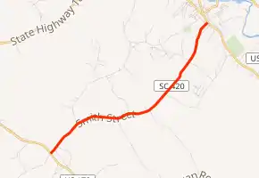 SC 420 begins at an intersection with U.S. Route 178 (US 178; Mock Orange Road) in Shoals Junction, within Greenwood County where the roadway continues as Old Shoals Junction Road. It travels in a fairly northeasterly direction and crosses Dunns Creek before it enters Ware Shoals. It crosses over Turkey Creek just before meeting its eastern terminus, an intersection with US 25 Business and SC 252 Truck (South Greenwood Avenue). Here, the roadway continues as Honea Path Street.[2]