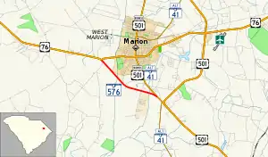 South Carolina Highway 576 (SC 576) is a 3.090-mile (4.973 km) primary state highway in the state of South Carolina. The highway connects U.S. Route 76 (US 76), west of Marion, to US 501, south-southeast of the city.