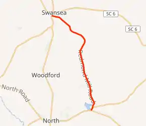 South Carolina Highway 692 (SC 692) is a 9.100-mile (14.645 km) state highway in the U.S. state of South Carolina. The highway connects mostly rural areas of Orangeburg and Lexington counties with Swansea. It runs generally north and south though it is officially designated as an east-west highway with its western terminus at U.S. Route 321 (US 321) in Swansea and its eastern terminus at SC 172 east-northeast of North.