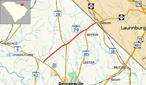 South Carolina Highway 383 (SC 383) was a state highway that was established by 1937 as new primary routing from SC 9 near Bennettsville to SC 79 near Boykin. It was renumbered as part of SC 79 by 1970.[5]