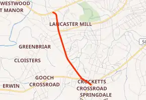 South Carolina Highway 914 (SC 914) is a 1.720-mile-long (2.768 km) state highway in the U.S. state of South Carolina. The highway connects Lancaster and Springdale, via Lancaster Mill.