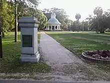 After the exposition, Charleston built its Hampton Park on the eastern portion of the grounds that included the Exposition's formal court. Although it was moved and rebuilt, the bandstand in the park remains.[10] In 1919, South Carolina obtained the western portion. This was used for the new campus of The Citadel.[2][3] Lowndes Grove, which was the Woman's Building in the exposition, remains.[11]
