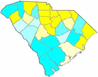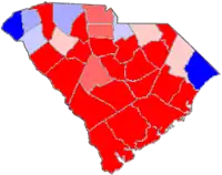 ![]() Red counties were won by Haley and blue counties were won by Sheheen |