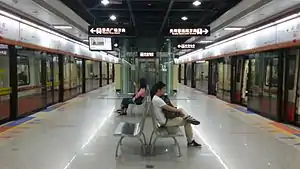 South China Normal University Station or Huashi Station (Chinese: 华师站) is a station of Line 3 of the Guangzhou Metro. It started operations on 30 December 2006. It is located at the junction of Tianhe Road North[1] and Wushan Road[2] in Tianhe District. Its name is derived from the nearby South China Normal University.[3][4]