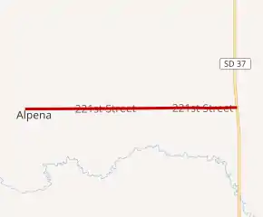SD 224 begins at Willow Avenue in the town of Alpena in Jerauld County. The highway travels due east on 221st Street, crossing over a railroad and leaving the town, into Sanborn County. From the county line, SD 224 continues 5 miles (8.0 km) to a junction with SD 37, where the highway ends.[2]