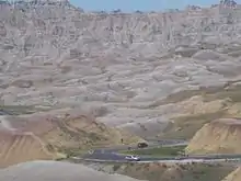 South Dakota Highway 240 (SD 240), also signed as the Badlands Loop, is a 40.033-mile-long (64.427 km) state highway in southeastern Pennington and northwestern Jackson counties in South Dakota, United States, that travels through the eastern portion of Badlands National Park.