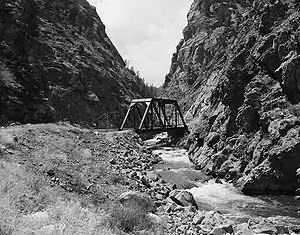 In the late 1980s, a proposal was put forth for the Two Forks Dam, which would have created a reservoir flooding the entire section from the North Fork confluence to the town of Deckers. In 1990, the US EPA vetoed the permit, calling the project an "environmental catastrophe."