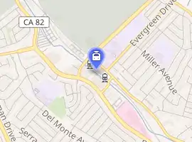 SamTrans bus routes 35, 122, and 130 stop in the busway on the west side of the station. Routes 399 and ECR stop on El Camino Real west of the station.[3]