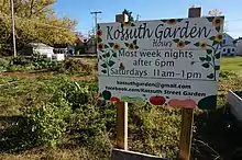 Kossuth Street Garden covers the entire lot 641 E. Kossuth Street, located in the Southern Orchards neighborhood just east of German Village. Founder and director Michael Doody has been serving the community since 2007.[30]