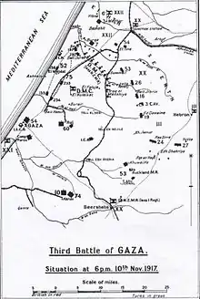 - XXII Corps commanded by Refet Bey with headquarters at Jebaliye holding the strongly fortified positions around Gaza with the 3rd, 53rd Divisions