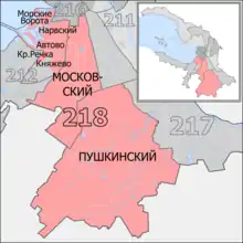 | Districts | Kirovsky (Avtovo, Knyazhevo, Krasnenkaya Rechka, Narvsky), Moskovsky, Pushkinsky[1] |