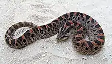 Heterodon simus, commonly known as the southern hog-nosed snake, is a harmless[4] snake species endemic to the southeastern United States. No subspecies are currently recognized.[5]