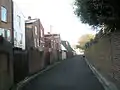 North of Pepys Close, a brick wall now blocks the route northwards into a wide present-day back alleyway that passes between the backs of terraced houses in Bath Road and St. Augustine Road.[21] The Southsea Railway line once passed through this alleyway and emerged at today's expanded Devonshire Avenue, the former location of Jessie Road Bridge Halt railway station. A road bridge was formerly built above this station, and connected Jessie Road in the west to Devonshire Avenue in the east. A turfed island in the centre of the present day Devonshire Avenue marks the location of the eastern half end of the demolished bridge.[22]