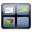 Function-key combinations can also be configured to activate the full-screen Spaces grid view, switch between spaces directionally, or switch directly to a specific space by number. A function allows applications or windows to be moved into (or through) adjacent spaces by dragging and holding the window (or document) at the edge of the screen. During a transition to a new space, a small, translucent image representing the Spaces grid configuration will be shown in the center of the screen for a few seconds, with arrows representing the movement, and the active space highlighted.