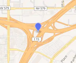 ![]() Aerial view of the interchange in 2001, facing east towards Downtown Las Vegas | |