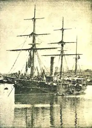 Conde de Venadito was a Velasco-class unprotected cruiser of the Spanish Navy. It was built at the naval shipyard at Cartagena, Spain in 1883, and was completed and launched five years later. In 1895, she unsuccessfully attempted to sink the American merchant ship Allianca off Cape Maisi, Cuba under the suspicion that she was smuggling arms to the Cuban insurgents.[1] She was stricken from the register in 1907 and was finally sunk in 1936 as a target ship.[2]
