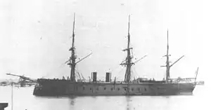 The Spanish ironclad Sagunto was a wooden-hulled armored frigate built for the Royal Spanish Navy (Armada Real) in the 1860s and 1870s. She was originally built as a large ship of the line, but was converted into a central-battery ironclad while still under construction. She was stricken from the naval register in 1891.
