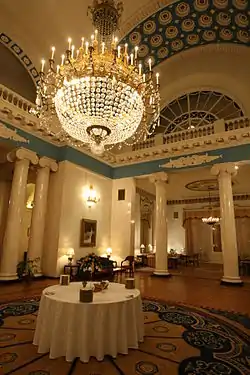Spaso House is a listed Neoclassical Revival building at No. 10 Spasopeskovskaya Square in Moscow. It was originally built in 1913 as the mansion of the textile industrialist Nikolay Vtorov. Since 1933, it has been the residence of the U.S. Ambassador to the Soviet Union, and since 1991, to the Russian Federation.[1] The building belonged to the USSR and later Russia and, under the 1985 lease contract, the U.S. was supposed to pay 72,500 Soviet roubles per year, which by 2001 was the equivalent of about $3, which the U.S. had failed to pay in 1993.[2] In 2004, the two sides concluded a new 49-year lease that was said to be based on a joint assessment of the property's value; the rent rate was not disclosed.[3][4]