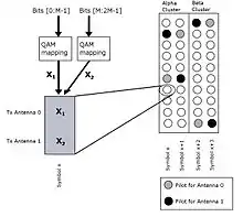 A precoding matrix is used to precode the symbols in the vector to enhance the performance. The column dimension of can be selected smaller than which is useful if the system requires streams because of several reasons. Examples of the reasons are as follows: either the rank of the MIMO channel or the number of receiver antennas is smaller than the number of transmit antennas.