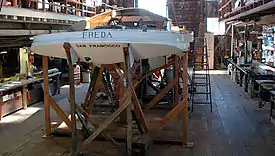 Freda was built in 1885 in Belvedere, California by saloon keeper Harry Cookson. Freda has been celebrated for her simple elegance, and called both the Common Man’s Yacht and the Matriarch of San Francisco Bay. She was owned by one of the early commodores of the Corinthian Yacht Club in Tiburon, California. Painstakingly restored in the 1950s by Harold Sommer, captain of the last wooden tugboat on San Francisco Bay, Freda became a fixture in the local Master Mariner fleet regattas, but has since suffered from years of deterioration.