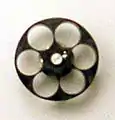 Prior to the introduction of modern metallic cartridges (i.e. 1860–1879), certain models of older black powder cap and ball revolvers could be used with multiple replaceable cylinders functioning as "speedloaders". It was however generally easier to simply buy a second revolver than to locate a cylinder alone, not to mention faster than swapping cylinders.[2] As the reloading process for a cap and ball revolver was lengthy and time-consuming, carrying already-loaded cylinders with percussion caps placed on cylinder nipples was a considerable improvement in reloading time, although this is primarily a "trick" used by modern shooters who are used to having numerous shots available in short time with little work. When "spare cylinders" were carried, this practice was primarily done on Remington revolvers, as their cylinders were easily removable and were held by a cylinder pin, unlike the early Colt revolvers, which were held together by a wedge that went through the cylinder pin.[3]