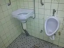 The Speibecken is often a large ceramic bowl installed at waist height with handles for the user to hold onto and a shower head to flush the unit.[1] They are encountered more often in men's facilities than in women's.