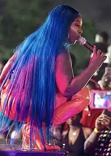 In February 2020, Spice released her first solo song of 2020, a single titled "Rolling".[46] The following month, she announced the release of her debut studio album on Love & Hip Hop: Atlanta.[47] Its lead single, "Frenz", was released to streaming platforms on 18 December 2020.[48] The album's second lead single, "Go Down Deh", featuring Shaggy and Sean Paul, was released on 30 April 2021.[49] Its accompanying music video quickly amassed millions of views, with the song becoming a success on streaming platforms.[50] "Go Down Deh" was ranked number 48 on NPR Music's list of the 100 Best Songs of 2021.[51]