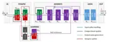 - Dynamic Neuromorphic Asynchronous Processor (DYNAP)[29] combines slow, low-power, inhomogeneous sub-threshold analog circuits, and fast programmable digital circuits. It supports reconfigurable, general-purpose, real-time neural networks of spiking neurons. This allows the implementation of real-time spike-based neural processing architectures[30][31] in which memory and computation are co-localized. It solves the von Neumann bottleneck problem and enables real-time multiplexed communication of spiking events for realising massive networks. Recurrent networks, feed-forward networks, convolutional networks, attractor networks, echo-state networks, deep networks, and sensor fusion networks are a few of the possibilities.[32]