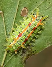 The spiny oak slug (Euclea delphinii) is the larval form (caterpillar) of a moth in the family Limacodidae.
