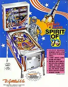 Spirit of 76 is a pinball game designed by Ed Krynski and Wayne Neyens and released in 1975 by Gottlieb. The pinball machine should not be confused with the pinball machine The Spirit of '76 by Mirco Games, Inc.[1][2]