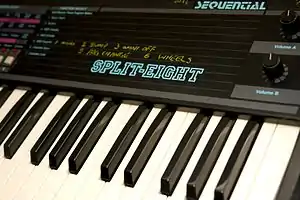 The Split-8 is a polyphonic analogue keyboard synthesizer manufactured by Sequential Circuits. Built in Japan and going by the alternative name "Pro-8" in some markets, this was one of the last synthesizers produced by the company and was assigned model number 608. It was released in 1985 at a list price of $1,199 (or $1,195; this number varied between advertisements). This and some other Sequential Circuits synthesizers (the Six-Trak, Multi-Trak and MAX) were built around the Curtis Electronics CEM 3394 "synth-on-a-chip" integrated circuit, and used a Z80 as their central microprocessor.