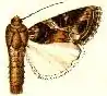 The wingspan of the adult moth is 32–44 millimetres (1+1⁄4–1+3⁄4 in). The fore-wing is brown with tan markings and a blurry white stripe coming from the wing tip. The hind-wing is white with a thin brown margin. Larvae are black with thin yellow stripes on their sides.[2]