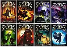 ![]() The covers of the first eight books of The Wardstone Chronicles, the first arc in the Spook's series | |