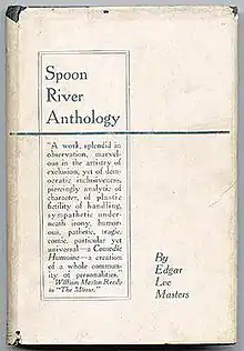 Spoon River Anthology (1915), by Edgar Lee Masters, is a collection of short free verse poems that collectively narrates the epitaphs of the residents of Spoon River, a fictional small town named after the Spoon River, which ran near Masters' home town of Lewistown, Illinois. The aim of the poems is to demystify rural and small town American life. The collection includes 212 separate characters, in all providing 244 accounts of their lives, losses, and manner of death. Many of the poems contain cross-references that create an unabashed tapestry of the community. The poems originally were published in 1914 in the St. Louis, Missouri, literary journal Reedy's Mirror, under the pseudonym Webster Ford.[1]