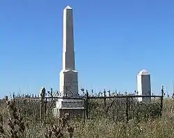 The gravesite of the Brulé Lakota chief Spotted Tail stands outside an Episcopal cemetery on the outskirts of Rosebud, South Dakota, the government center of the Rosebud Indian Reservation. It is marked by a stone obelisk which is engraved "Spotted Tail", Chief of the Sioux (Born 1823, Died Aug. 5, 1881). The plot is surrounded by a wrought iron fence. It is significant as the only site associated with Spotted Tail's life. Spotted Tail was chosen to lead the Brulé when they were first confined to the reservation, and was an influential figure in the tribal politics of the 1870s.[2] His gravesite was listed on the National Register of Historic Places in 1980.[1]