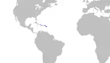 The range of the Springer's sawtail catshark is limited and overlaps that of the similar Antilles catshark; it occurs off Cuba, Jamaica, Hispaniola, Puerto Rico, the Leeward Islands, and probably the U.S. Virgin Islands. The full extent of its distribution is uncertain due to confusion with related species. Recorded from depths of 457 to 699 m (1,499 to 2,293 ft), this species is found on or near the bottom over upper continental and insular slopes.[1][4]